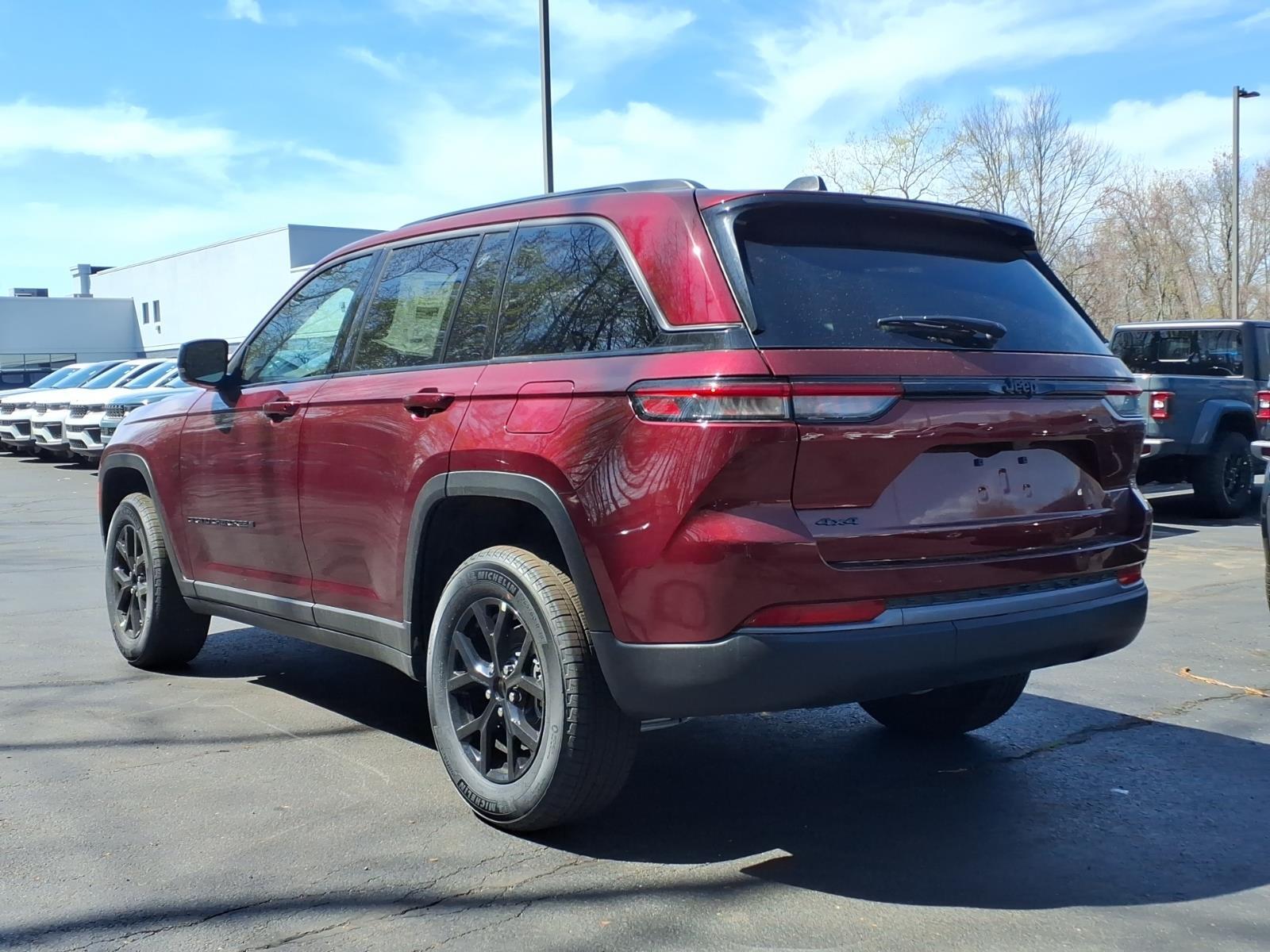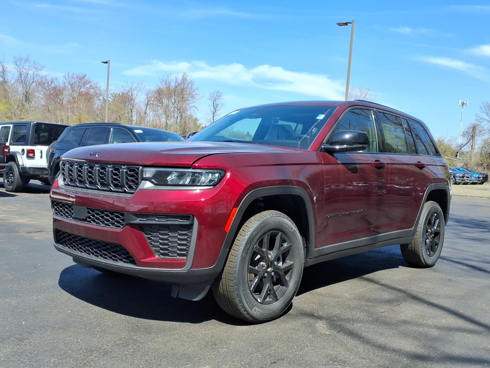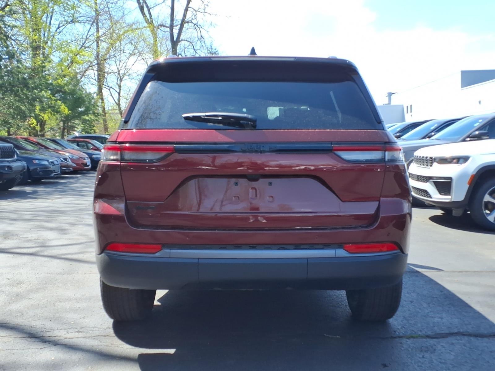 Velvet Red Pearlcoat 2026 Jeep Grand Cherokee Laredo Altitude 4WD 8-Speed Automatic 2.0L V6 SMPI Turbocharged DOHC 24V LEV3-SULEV30 293hp 4WD, 115V Auxiliary Power Outlet, 12.3Touchscreen Display, 240 Amp Alternator, 3.70 Rear Axle Ratio, 4-Wheel Disc Brakes, 4G LTE Wi-Fi Hot Spot, 6 Speakers, ABS brakes, Active Cruise Control, Active Driving Assist System, Active Noise Control System, Air Conditioning, Alloy wheels, AM/FM radio: SiriusXM, an-Teak/Satin Chrome Interior Accents, Anti-whiplash front head restraints, Apple CarPlay, AppLink/Apple CarPlay and Android Auto, Automatic temperature control, Auxiliary Battery, Black Headliner, Body Color Door Handles (B), Brake assist, Bumpers: body-color, Capri Leatherette/Suede Seats, Cloth Seats, Compass, Connected Travel and Traffic Services, Connectivity - US/Canada, Delay-off headlights, Delete Laredo Badge, Disassociated Touchscreen Display, Driver door bin, Driver vanity mirror, Dual Exhaust Tips, Dual front impact airbags, Dual front side impact airbags, Electronic Stability Control, Emergency communication system, Exterior Accents Dark Neutral Metallic, For Details, Visit DriveUconnect.com, Four wheel independent suspension, Front anti-roll bar, Front Bucket Seats, Front Center Armrest w/Storage, Front dual zone A/C, Front Fascia Upper A, Front reading lights, Fully automatic headlights, Global Telematics Box Module (TBM), Gloss Black Exterior Mirrors, Google Android Auto, GPS Antenna Input, GPS Navigation, HD Radio, Heated door mirrors, Heated Exterior Mirrors, Heated Front Seats, Heated Steering Wheel, Heavy-Duty Engine Cooling, Illuminated entry, Integrated Center Stack Radio, Integrated Voice Command with Bluetooth, Intersection Collision Assist System, Knee airbag, Laredo Altitude Appearance Package, Low tire pressure warning, Manual Folding Exterior Mirrors, Normal Duty Suspension, Occupant sensing airbag, Outside temperature display, Overhead airbag, Overhead console, Panic alarm, ParkView Rear Back-Up Camera, Passenger door bin, Passenger vanity mirror, Power door mirrors, Power driver seat, Power Liftgate, Power steering, Power windows, Quick Order Package 2BB Laredo Altitude, Radio data system, Radio: Uconnect 5 Nav with 12.3Display, Rain Sensitive Windshield Wipers, Rear anti-roll bar, Rear Fascia Upper A, Rear reading lights, Rear window defroster, Rear window wiper, Remote keyless entry, Remote Start System, Secondary Active Grille Shutters, Security system, Selec-Terrain System, Selectabl