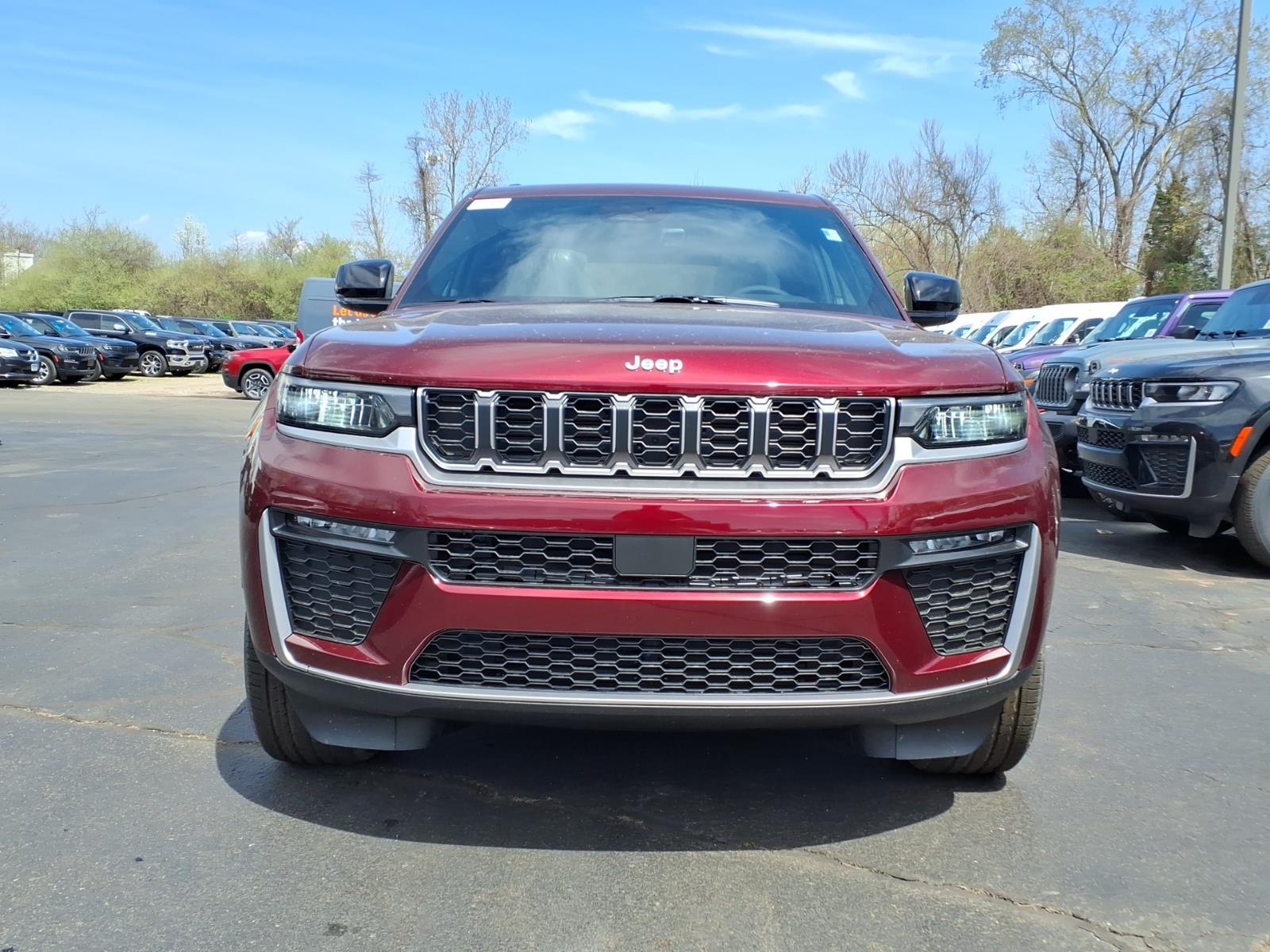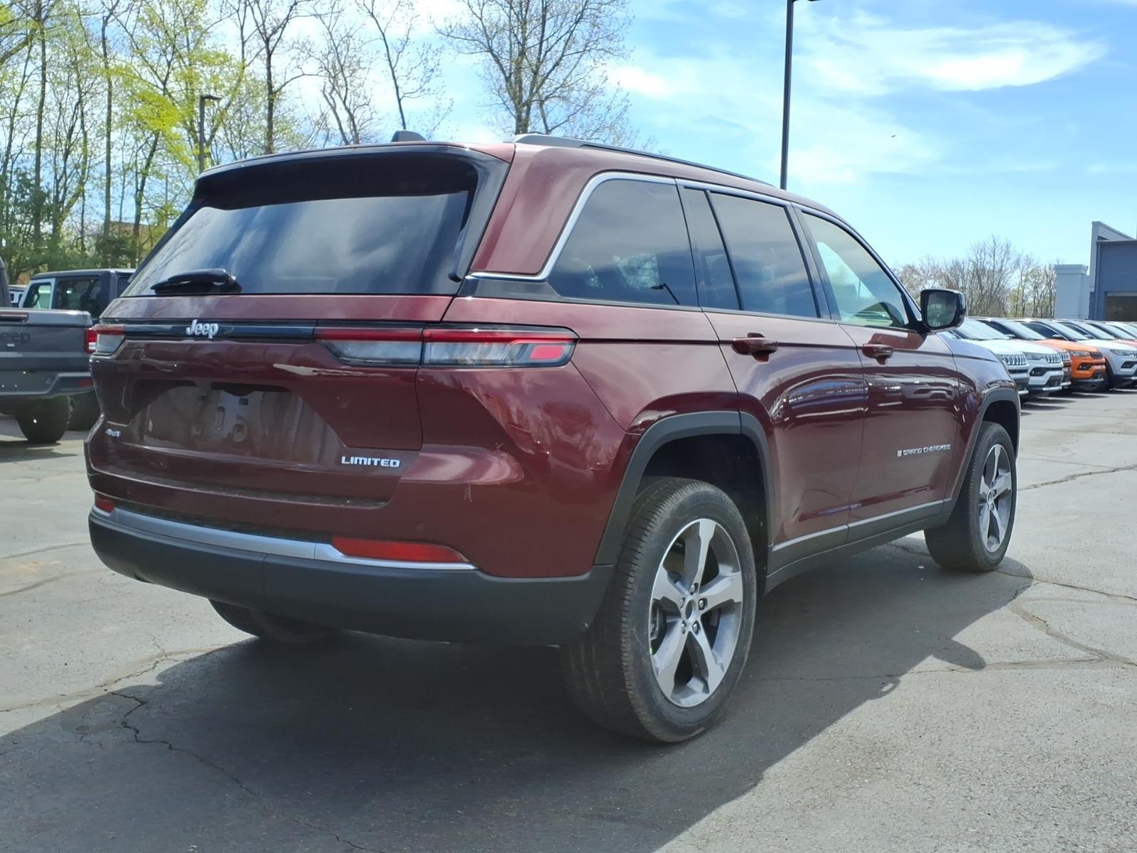 Velvet Red Pearlcoat 2026 Jeep Grand Cherokee Limited 4WD 8-Speed Automatic 2.0L I4 PDI Turbocharged DOHC 16V LEV3-SULEV30 324hp 4WD, 10 Speakers, 3.70 Rear Axle Ratio, 4-Wheel Disc Brakes, 4G LTE Wi-Fi Hot Spot, ABS brakes, Active Noise Control System, Air Conditioning, Alloy wheels, AM/FM radio: SiriusXM with 360L, Anti-whiplash front head restraints, Apple CarPlay, AppLink/Apple CarPlay and Android Auto, Audio memory, Auto High-beam Headlights, Automatic temperature control, Auxiliary Battery, Brake assist, Bumpers: body-color, Capri Leatherette Seats, Compass, Connectivity - US/Canada, Delay-off headlights, Disassociated Touchscreen Display, Driver door bin, Driver vanity mirror, Dual front impact airbags, Dual front side impact airbags, Dual-Pane Panoramic Sunroof, Electronic Stability Control, Emergency communication system, For Details, Visit DriveUconnect.com, Four wheel independent suspension, Front anti-roll bar, Front Bucket Seats, Front Center Armrest w/Storage, Front dual zone A/C, Front fog lights, Front License Plate Bracket, Front reading lights, Fully automatic headlights, Garage door transmitter, Global Telematics Box Module (TBM), Gloss Black Exterior Mirrors, Google Android Auto, GPS Antenna Input, Heated door mirrors, Heated Exterior Mirrors, Heated front seats, Heated rear seats, Heated steering wheel, Illuminated entry, Integrated Center Stack Radio, Integrated Voice Command with Bluetooth, Knee airbag, Low tire pressure warning, Manual Folding Exterior Mirrors, Memory seat, MyFlexCare Service Plan, Navigation System, Normal Duty Suspension, Occupant sensing airbag, Outside temperature display, Overhead airbag, Overhead console, Panic alarm, ParkView Rear Back-Up Camera, Passenger door bin, Passenger vanity mirror, Power door mirrors, Power driver seat, Power Liftgate, Power passenger seat, Power steering, Power windows, Quick Order Package 2BE Limited, Radio data system, Radio: Uconnect 5 Nav with 12.3Display, Rear anti-roll bar, Rear reading lights, Rear window defroster, Rear window wiper, Remote keyless entry, Security system, Speed control, Speed-Sensitive Wipers, Split folding rear seat, Spoiler, Steering wheel mounted audio controls, Tachometer, Telescoping steering wheel, Tilt steering wheel, Traction control, Trip computer, Turn signal indicator mirrors, USB Host Flip, Variably intermittent wipers, Voltmeter, Wheels: 20x 8.5Machined/Painted Aluminum. 19/26 City/Highway MPG