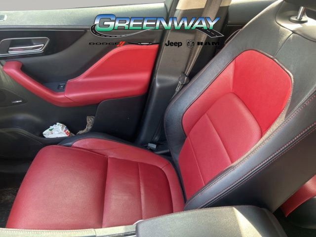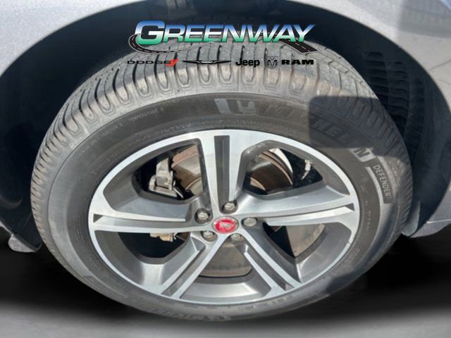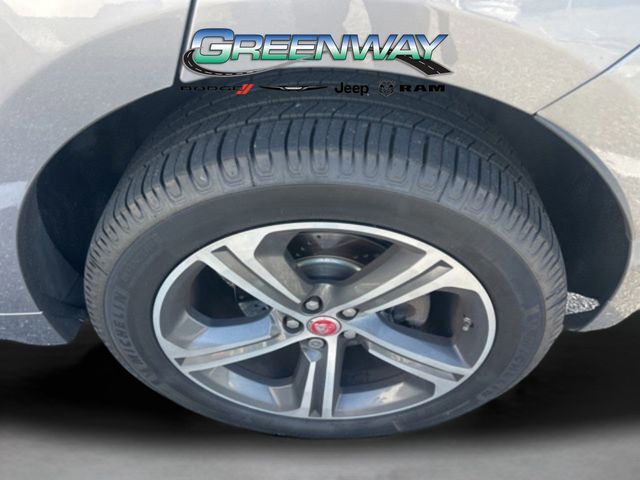Dual front airbags, front seat-mounted side-impact airbags, dual front/rear head curtain airbags, four-wheel disc brakes with anti-lock, torque vectoring by braking, dynamic stability control, traction control, roll stability control, adaptive surface response intelligent dynamic driveline, emergency brake assist, cruise control with automatic speed limiter, hill launch assist, trailer stability assist, rain sensing windshield wipers, automatic headlamps, Bluetooth hands free phone system, perimeter alarm, engine immobilizer, Jaguar Smart Key system with keyless start, and tire pressure monitoring system. Premium adds HomeLink garage door opener, and rear view camera. Prestige adds Xenon high intensity discharge (HID) headlamps, LED daytime running lights, navigation system, front/rear parking aids, and keyless entry. R-Sport adds automatic LED adaptive headlights with intelligent high beams, lane keep assist, driver fatigue alert, blind spot monitor with closing vehicle sensing, reverse traffic detection, autonomous emergency braking with pedestrian detection, and front fog lamps. First Edition adds park assist, surround camera system, heads-up display, traffic sign recognition, adaptive speed limiter, and adaptive cruise control with queue assist.