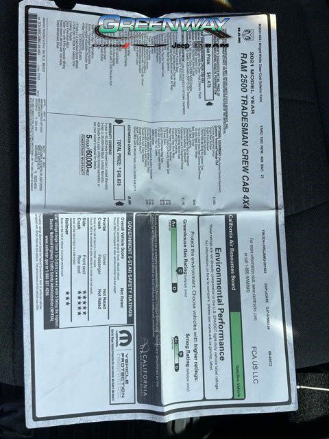 This 2021 Ram 2500 Tradesman is a rugged and capable pickup that's ready to take on any task you throw its way. With its powerful 6.4L V8 engine, 4WD capability, and a host of premium features, this truck is built to handle the toughest jobs with ease.- 4X4- Apple CarPlay/Android Auto- TRADESMAN LEVEL 2 EQUIPMENT GROUP- CHROME APPEARANCE GROUP- BED UTILITY GROUP- ELECTRIC SHIFT-ON-THE-FLY TRANSFER CASE- 4.10 AXLE RATIO- ANTI-SPIN DIFFERENTIAL REAR AXLE- RADIO: UCONNECT 4 W/8.4" DISPLAYThe exterior of this Ram 2500 Tradesman is finished in a sleek White color, and it's equipped with a host of chrome accents that add a touch of style and sophistication. The truck also features 18-inch steel chrome-clad wheels, a bright front and rear bumper, and a MOPAR spray-in bedliner to protect your cargo.Inside, the cabin is outfitted with a comfortable 40/20/40 split bench seat, and the Uconnect 4 infotainment system with an 8.4-inch touchscreen display provides seamless connectivity and entertainment. The truck also comes equipped with a 115V auxiliary power outlet, allowing you to power your tools or devices on the job site.But this Ram 2500 Tradesman is more than just a pretty face – it's a workhorse that's built to handle the toughest tasks. The 4.10 axle ratio, anti-spin differential rear axle, and electric shift-on-the-fly transfer case ensure that you have the power and traction you need to conquer any terrain.Whether you're hauling a heavy load, towing a trailer, or navigating through rough terrain, this 2021 Ram 2500 Tradesman is up for the challenge. With its impressive capabilities and premium features, it's the perfect choice for the discerning truck buyer who demands nothing but the best.If you're in the market for a rugged and capable pickup that can handle any job, we encourage you to come in and take this 2021 Ram 2500 Tradesman for a test drive. We're confident that you'll be impressed by its performance, versatility, and overall value. Stop by our showroom today and let us show you why this truck is the perfect fit for your needs.