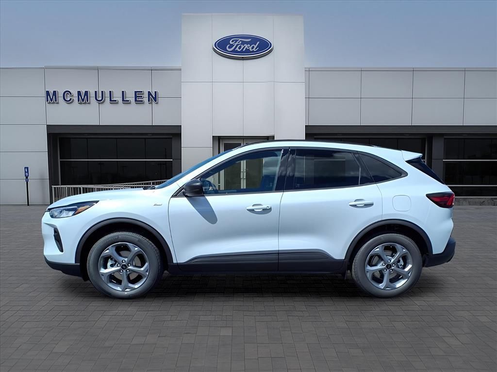 Our sporty 2025 Ford Escape ST-Line AWD with the Cold Weather Pack can turn heads as it takes on your days in Space Silver Metallic! Powered by a TurboCharged 1.5 Liter EcoBoost 3 Cylinder providing 180hp to an 8 Speed Automatic transmission for energetic everyday capability. Agile and versatile, this All Wheel Drive SUV also scores nearly 32mpg on the highway with responsive handling for urban adventures. For an athletic impression, our Escape is proudly presented with LED signature lighting, a power liftgate, dual chrome-tipped exhaust outlets, alloy wheels, and ST-Line upgrades like a black mesh grille, a large rear spoiler, an exclusive rear skid plate, and black roof rails. More dynamic details greet you in our ST-Line cabin, including our Cold Weather Pack that adds heated sport contour front seats with red stitching, eight-way power for the driver, a heated flat-bottom steering wheel, and remote start to dual-zone automatic climate control, and keyless access/ignition. Digital advantages of this comfortable cockpit include an 8-inch touchscreen, an 8-inch driver display, WiFi compatibility, voice control, wireless Android Auto/Apple CarPlay, Bluetooth, and six-speaker audio. Ford takes an intelligent approach to safety with forward collision warning, rear cross-traffic alert, blind-spot monitoring, automatic braking, lane-keeping assistance, a rearview camera, and more. With all that, our Escape ST-Line is waiting for your next command! Save this Page and Call for Availability. We Know You Will Enjoy Your Test Drive Towards Ownership! Ford Motor Credit WAC. Price includes: $5000 - Model Year Closeout Bonus Cash - Escape Gas/Hybrid. Exp. 03/31/2026 RETIRED SERVICE LOANER $1000 trade in incentive on 2018 or newer vehicles with less than 110,000 miles to be traded in ends 6-30-2026