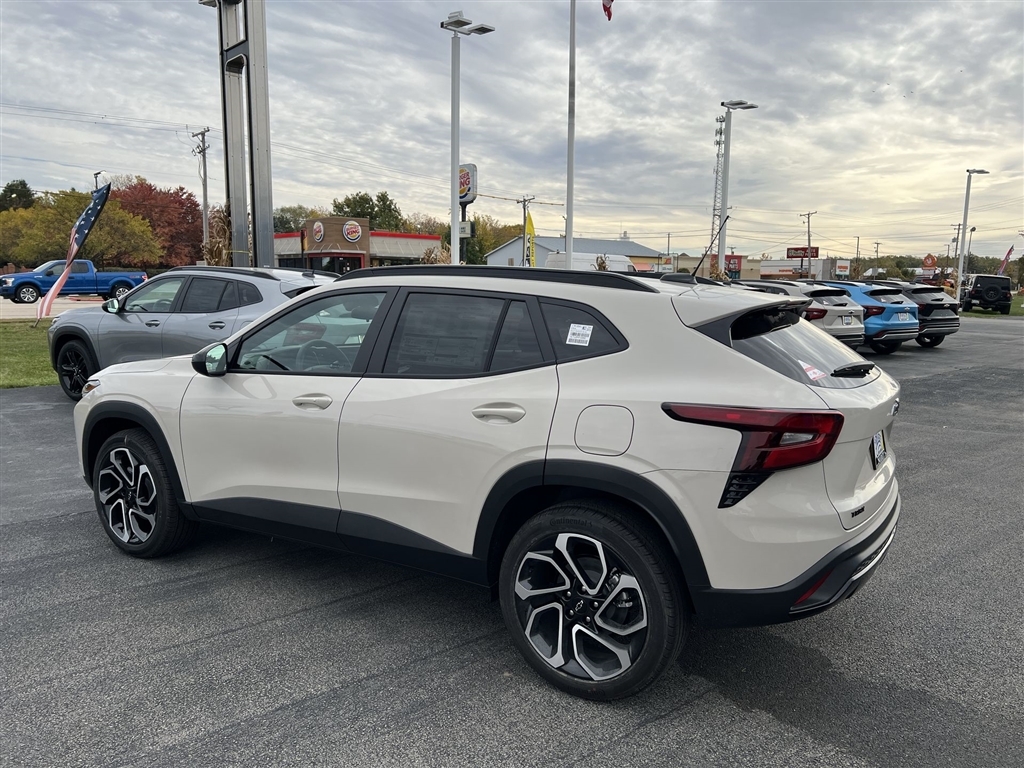 White Sands 2026 Chevrolet Trax 2RS FWD 6-Speed Automatic ECOTEC 1.2L Turbo28/32 City/Highway MPGDiscover the D'Arcy Difference! We care - we are here and we are ready to help! Stop by www.darcyautos.com today to see up to date information, including showroom and service hours, and how to make an appointment or schedule delivery. This vehicle has the Pulse Brake Light installed to help reduce rear end collisions. $399 will be added to the purchase price for this accessory.D'Arcy Motors has been serving Joliet and its surrounding communities for over 25 years. Our business philosophy, which is to sell cars one car at a time and to make the guest the most important part of the process, has remained the same since 1991. Putting our guests first means being a good corporate citizen and investing back into our community. We look forward to serving you!