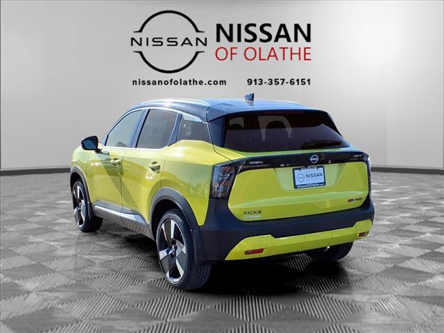Nissan of Olathe Proudly Presents: Yuzu Yellow Metallic/Super Black 2025 Nissan Kicks SR 27/34 City/Highway MPG $2,391 off MSRP! Priced below KBB Fair Purchase Price!