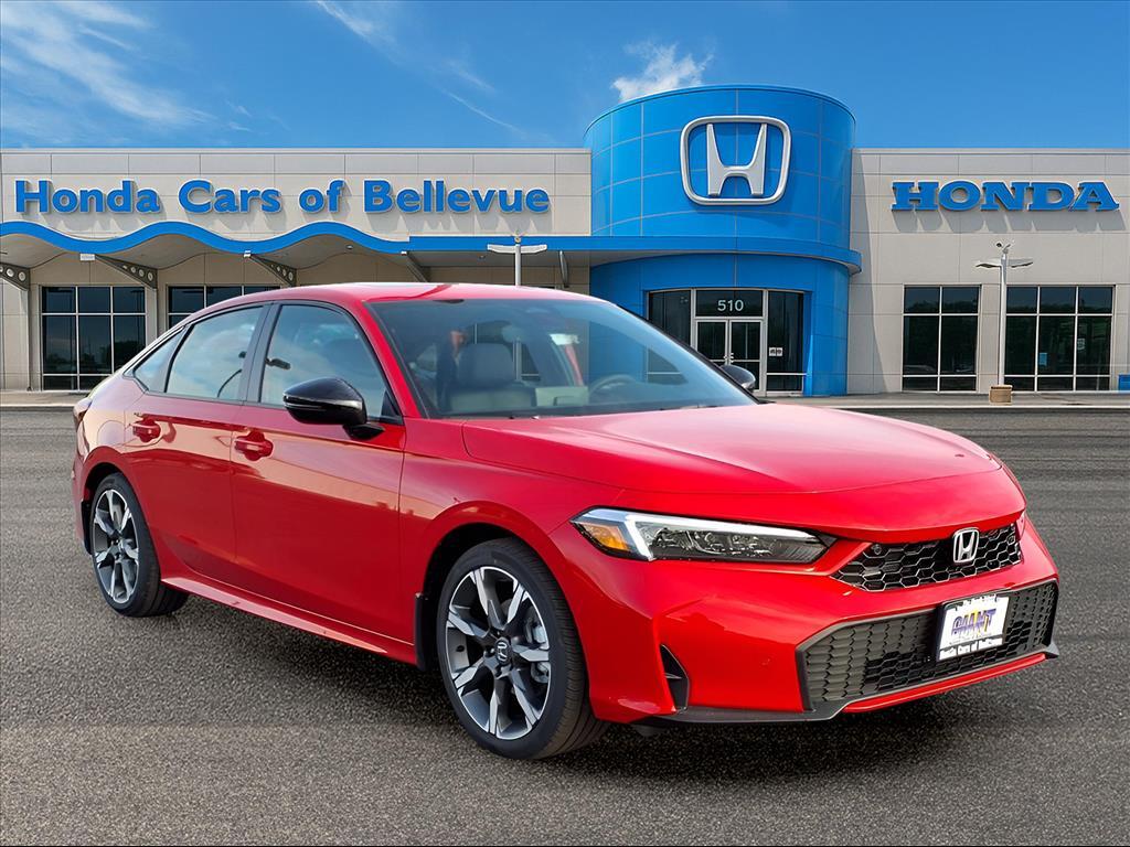 Honda Cars of Bellevue, Omahas Honda Giant! Save money at the pump with this fuel-sipping Honda Civic Sedan Hybrid. There is no reason why you shouldnt buy this Honda Civic Sedan Hybrid Sport Touring. It is incomparable for the price and quality. Just what youve been looking for. With quality in mind, this vehicle is the perfect addition to take home. The 2026 Honda exterior is finished in a breathtaking Rallye Red, while being complemented by such a gorgeous BLACK interior. This color combination is stunning and absolutely beautiful! Serving the Heartland for over 30 years, one happy Honda customer at a time! .