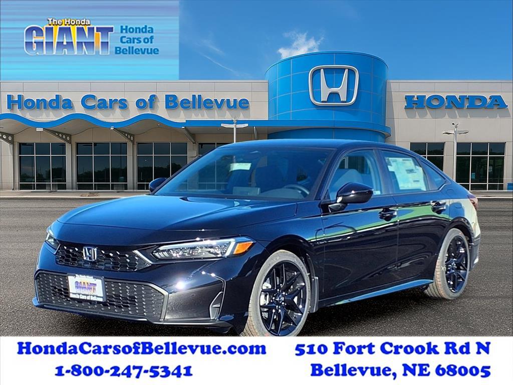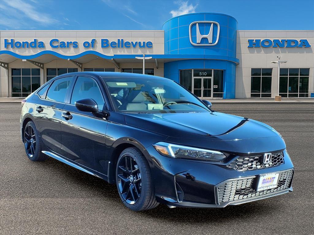 Honda Cars of Bellevue, Omahas Honda Giant! Stylish and fuel efficient. Its the perfect vehicle for keeping your fuel costs down and your driving enjoying up. The 2026 Honda exterior is finished in a breathtaking Crystal Black Pearl, while being complemented by such a gorgeous BLACK interior. This color combination is stunning and absolutely beautiful! Youve found the one youve been looking for. Your dream car. The Honda Civic Sedan Sport will provide you with everything you have always wanted in a car -- Quality, Reliability, and Character. Serving the Heartland for over 30 years, one happy Honda customer at a time! .