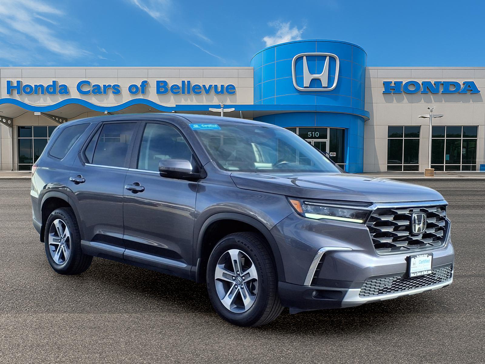 Honda Cars Of Bellevue has a wide selection of exceptional pre-owned vehicles to choose from, including this 2023 Honda Pilot. With CARFAX one owner report you can be sure that this Honda Pilot was only gently owned. As a Certified Pre-Owned vehicle, this Honda Pilot EX-L 8 Passenger offers you the peace of mind because you know it has been rigorously inspected to meet exacting standards. If youre in the market for an incredible SUV -- and value on-the-road comfort and manners more than ultimate off-road prowess or tow capacity -- youll definitely want to check out this Honda Pilot EX-L 8 Passenger. Outstanding craftsmanship and artisanal refinements abound with this Honda Pilot EX-L 8 Passenger. This AWD-equipped vehicle handles well in any weather condition or terrain. Youll benefit from superb handling, improved steering and excellent acceleration. One of the best things about this Honda Pilot is that it has low, low mileage. Its ready for you to truly break it in. Marked by excellent quality and features with unmistakable refined leather interior that added value and class to the Honda Pilot EX-L 8 Passenger. Pre-owned doesnt have to mean used. The clean interior of this Honda Pilot makes it one of the nicest youll find. A vehicle as well-maintained as this Honda Pilot almost doesnt need a warranty, but you rest easier knowing it comes covered with the Honda factory warranty. Unique and nearly impossible to find, this 2023 Honda Pilot EX-L 8 Passenger is a collectors dream come true.