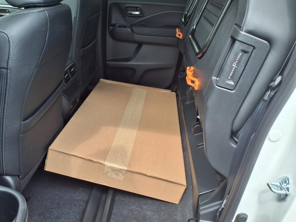 The 60/40-split and folding second-row seat provides the ultimate versatility for people- and cargo-hauling utility. With the seats folded down, the Ridgeline will comfortably carry up to five people while still accommodating long items, like a set of golf clubs, under the rear seat. Folding up one or both sides of the 60/40-split seat bottom opens up the back to carry tall and bulky items.
