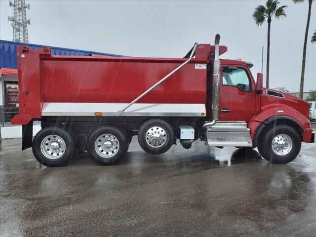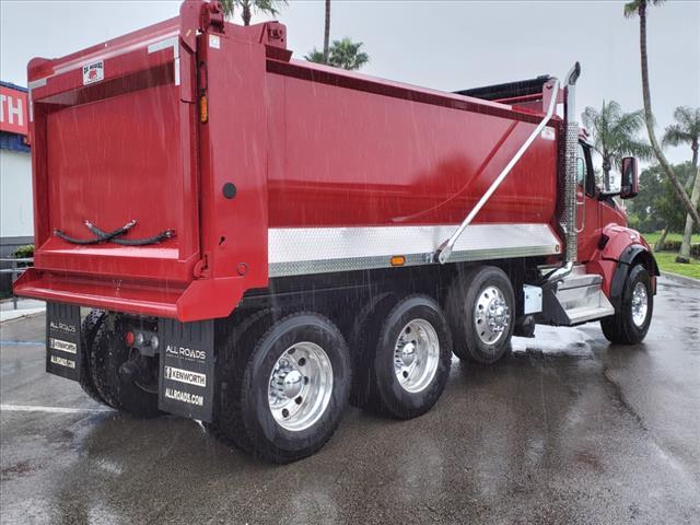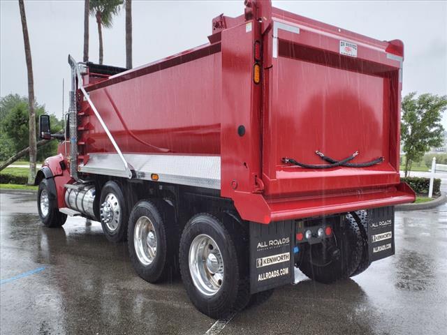 Transfer this unit to your nearest South Florida location at no additional cost! Fort Lauderdale, Fort Pierce, Riviera Beach, or Naples. Contact us for details! - Model Year: 2025 - Model: Kenworth T880 - Body: Ox Bodies Stampede 16 Dump Body - 1/4AR450 steel sides, front, and floor - 62front and side heights, 68rear height - Air-operated high-lift tailgate - Mountain-style electric tarp system - Narrow centered cab shield with 24projection - Engine: PACCAR MX-13 485 HP @ 1600 RPM, 1650 lb-ft torque @ 1000 RPM, with engine brake - Transmission: Allison 4500RDS 6-speed with PTO - Front Axle: PACCAR FX-20 rated at 20,000 lbs - Rear Axle: Meritor RT46-160 rated at 46,000 lbs - Rear Axle Ratio: 4.56 - Wheelbase: 213 inches - Cab to Axle: 139 inches - GVWR: 79,200 lbs - Frame: 10-3/4 x 3/8steel with full steel insert - Suspension: Hendrickson HaulMAXX EX 460 46K rear, Taperleaf 20K front with shocks - Pusher Axle: Watson & Chalin SL13 13,500 lbs steerable - Brakes: Bendix ES-16.5x6 front, ES-16.5x7 rear drum brakes - ABS: Bendix 4S/4M - Wheels: Alcoa aluminum - 22.5x12.25 front, 24.5x8.25 rear (Ultra One High Polish) - Tires: Goodyear 425/65R22.5 front, 11R24.5 rear - Fuel Tank: 110 US gallon aluminum - DEF Tank: 14 gallons - Exterior Color: Seminole Red cab - Interior: Vantage interior in Slate Gray - Cab: Day cab with rear cab window - Seats: Kenworth GT701 high back driver seat, GT100 high back toolbox passenger seat - Additional Features: Power windows, power door locks, tilt/telescoping steering wheel, Kenworth SmartWheel, heated power mirrors, LED marker lights, stainless steel sun visor, Kenworth TruckTech , CB radio Discover the benefits of partnering with All Roads Trucks for your commercial vehicle needs. We offer an extensive network of finance lenders providing competitive rates and favorable terms for small businesses, from independent owner-operators to large fleets and municipalities. Protect your investment with our factory extended warranty coverage for new truck purchases and standalone extended service agreements for vehicles nearing or past warranty expiration. Our dealerships, including All Roads Kenworth, All Roads Isuzu, All Roads Ford, TRP Parts, RMS Truck Bodies, and West End Service, are here to support you with 23 locations throughout the Mid-Atlantic states and South Florida. As part of the All Roads corporate family, which includes All Roads Equipment, All Roads Kubota, Vermeer All Roads, and the Norris Automotive Group, w