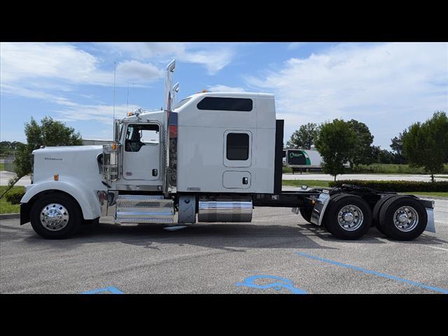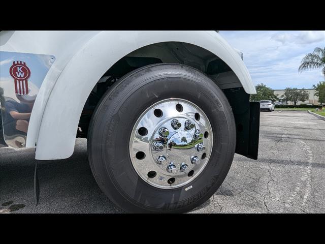 * Transfer this unit to your nearest South Florida location at no additional cost! Fort Lauderdale, Fort Pierce, Riviera Beach, or Naples. Contact us for details! 2025 Kenworth W900 Conventional Engine: Cummins X15 Performance Series 565 horsepower @ 1900 RPM 2050 lb-ft torque @ 1000 RPM Jacobs engine compression brake Transmission: Eaton RTLO20918B 18-speed Super 18 Front Axle: Dana Spicer E-1322W 13,200 lb capacity, 5drop, wide track Rear Axle: Dana Spicer DSH40 40,000 lb capacity dual axle 3.90 rear axle ratio Locking rear differential Front Suspension: Taperleaf 13,200 lb capacity with shocks Rear Suspension: Kenworth AG400 40,000 lb capacity, 52axle spacing, 9ride height Full Steel Inserts / Double Frame Gross Vehicle Weight Rating (GVWR): 52,350 lbs Wheelbase: 285 inches Cab-to-Axle: 185 inches Fifth Wheel: Jost JSK37USB-A7PX24 air slide, 50,000 lbs capacity, 24slide Front and Rear Air Disc Brakes: Bendix ADB22X Wheels: Alcoa 88565 22.5x8.25 aluminum, hub pilot, severe service, Level 1 high polish (front and rear) Tires: Front: Michelin X Line Energy Z 11R22.5 14PR Rear: Continental HDL2 11R22.5 14PR Fuel Tanks: 150 US gallon 24.5aluminum, right side behind cab 100 US gallon 24.5aluminum, left side behind cab Total capacity: 250 US gallons DEF Tank: 23.8 gallon medium round Exterior Color: White (L0006EY) Interior: Diamond VIT Studio sleeper interior in Jet Black with Dark Slate Gray trim 86AeroCab sleeper Kenworth SmartWheel leather-wrapped steering wheel Driver Seat: Kenworth Air-Cushion Premium Plus high back heated leather with dual armrests Passenger Seat: Kenworth Air-Cushion Premium Plus high back heated leather with dual armrests Sofabed for 86VIT sleeper Power windows, power door locks, tilt/telescoping steering wheel Kenworth Radio DEA730 AM/FM/WB/USB, Bluetooth & SiriusXM Satellite Cobra 29 CB radio with weatherband Dual rectangular 23air horns mounted on roof Exterior sun visor in stainless steel LED marker lights, turn signals, and stop/turn/tail lights Dual flush-mounted floodlights (3 sets) Polished aluminum fuel tanks and DEF tank cover Stainless steel cab-mounted air cleaner housings with bug screens Discover the benefits of partnering with All Roads Trucks for your commercial vehicle needs. We offer an extensive network of finance lenders providing competitive rates and favorable terms for small businesses, from independent owner-operators to large fleets and municipalities. Protect your investment with our factory