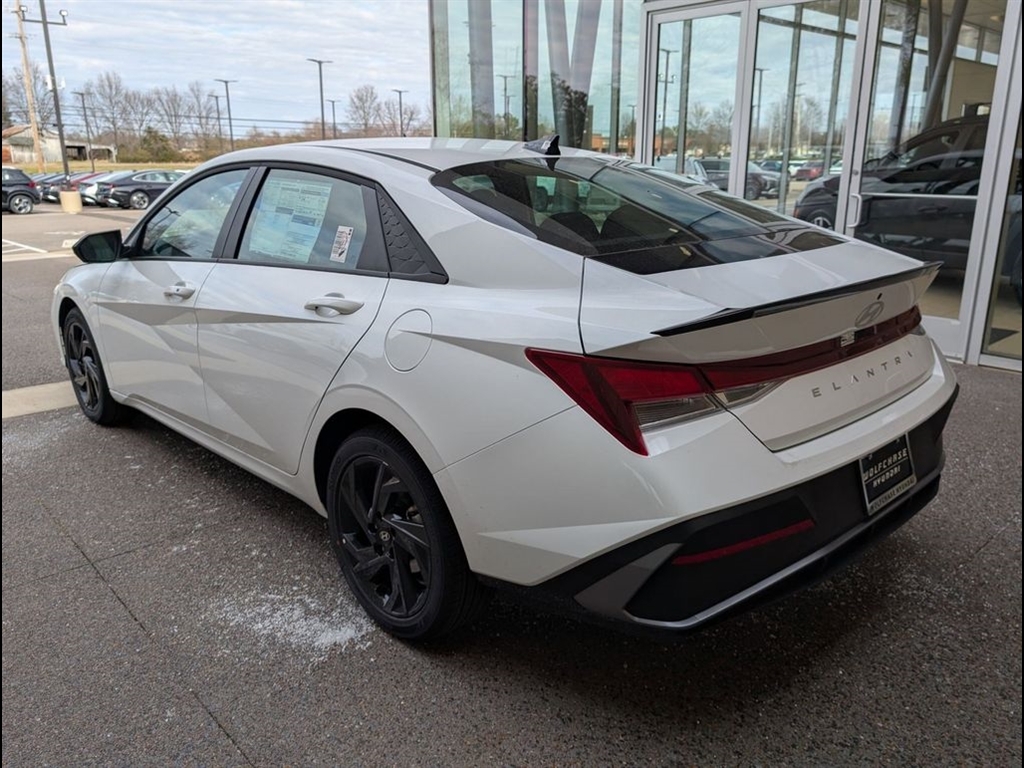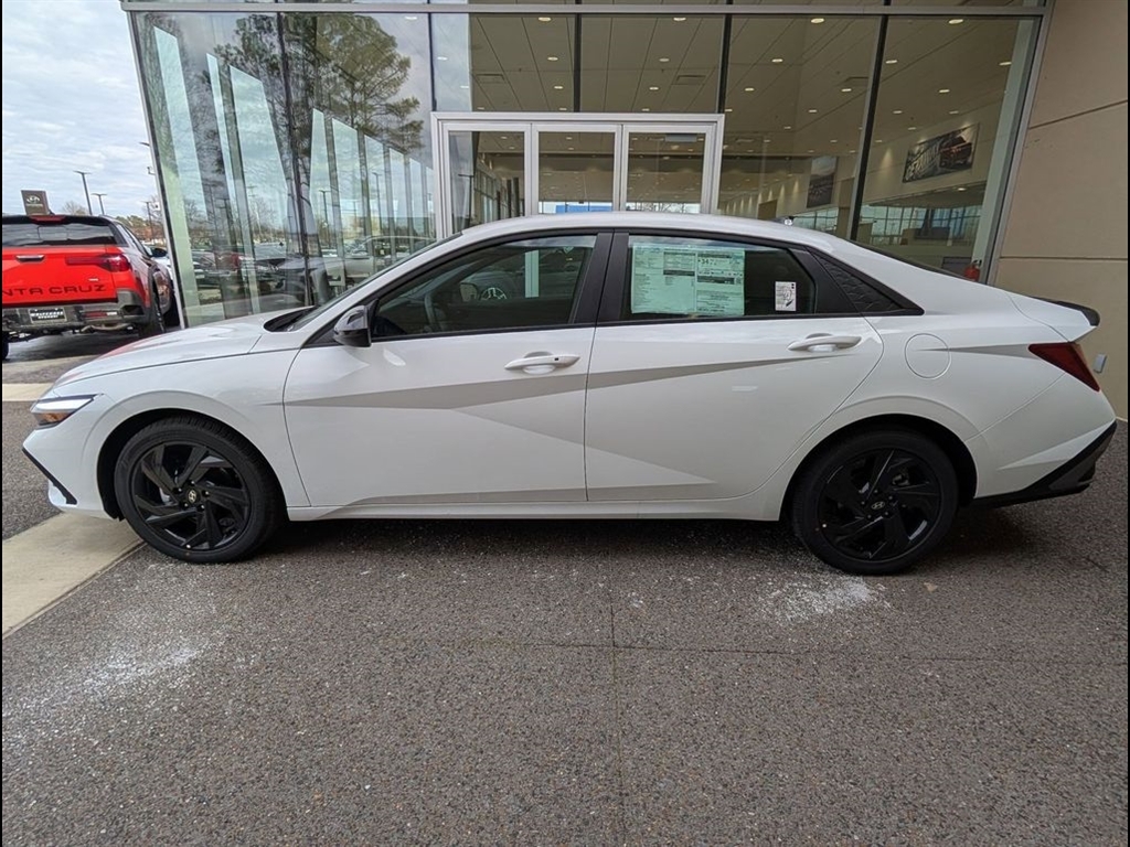 Serenity White 2026 Hyundai Elantra SEL Sport FWD CVT I4 30/39 City/Highway MPG When purchasing from Wolfchase Hyundai, we provide access to the largest loaner fleet in the Mid-South. Cargo Package (Cargo Blocks and Cargo Tray), Option Group 01, 4-Wheel Disc Brakes, 6 Speakers, ABS brakes, Air Conditioning, All-Season Fitted Liners, Alloy wheels, AM/FM radio, Apple CarPlay & Android Auto, Auto High-beam Headlights, Automatic temperature control, Brake assist, Bumpers: body-color, Cargo Side Bins, Carpeted Floor Mats, Center Console Tray, Delay-off headlights, Driver door bin, Driver vanity mirror, Dual front impact airbags, Dual front side impact airbags, Electronic Stability Control, Exterior Parking Camera Rear, First Aid Kit, Front anti-roll bar, Front Bucket Seats, Front Center Armrest, Front dual zone A/C, Front reading lights, Front wheel independent suspension, Fully automatic headlights, Illuminated entry, Low tire pressure warning, Occupant sensing airbag, Outside temperature display, Overhead airbag, Overhead console, Panic alarm, Passenger door bin, Passenger vanity mirror, Power door mirrors, Power steering, Power windows, Premium Cloth Seat Trim, Radio: AM/FM/HD Display Audio, Rear Bumper Applique, Rear side impact airbag, Rear window defroster, Remote keyless entry, Roadside Assistance Kit, Security system, Speed control, Speed-sensing steering, Spoiler, Steering wheel mounted audio controls, Tachometer, Telescoping steering wheel, Tilt steering wheel, Traction control, Trip computer, Variably intermittent wipers, and Wheels: 17x 7.0J Alloy Gloss Black w/Dark Finish. Price includes: $2000 - Hyundai HMF Dealer Choice : $2000 discount and 5.39% APR for 24 months. $44.05 per $1000 financed. Available to well qualified buyers who finance through Hyundai Motor Finance. H704. Exp. 03/31/2026