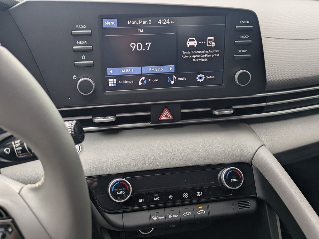 Serenity White 2026 Hyundai Elantra SEL Sport FWD CVT I4 30/39 City/Highway MPG When purchasing from Wolfchase Hyundai, we provide access to the largest loaner fleet in the Mid-South. Cargo Package (Cargo Blocks and Cargo Tray), Option Group 01, 4-Wheel Disc Brakes, 6 Speakers, ABS brakes, Air Conditioning, All-Season Fitted Liners, Alloy wheels, AM/FM radio, Apple CarPlay & Android Auto, Auto High-beam Headlights, Automatic temperature control, Brake assist, Bumpers: body-color, Cargo Side Bins, Carpeted Floor Mats, Delay-off headlights, Driver door bin, Driver vanity mirror, Dual front impact airbags, Dual front side impact airbags, Electronic Stability Control, Exterior Parking Camera Rear, First Aid Kit, Front anti-roll bar, Front Bucket Seats, Front Center Armrest, Front dual zone A/C, Front reading lights, Front wheel independent suspension, Fully automatic headlights, Illuminated entry, Low tire pressure warning, Occupant sensing airbag, Outside temperature display, Overhead airbag, Overhead console, Panic alarm, Passenger door bin, Passenger vanity mirror, Power door mirrors, Power steering, Power windows, Premium Cloth Seat Trim, Radio: AM/FM/HD Display Audio, Rear side impact airbag, Rear window defroster, Remote keyless entry, Roadside Assistance Kit, Security system, Severe Weather Kit, Speed control, Speed-sensing steering, Spoiler, Steering wheel mounted audio controls, Tachometer, Telescoping steering wheel, Tilt steering wheel, Traction control, Trip computer, Variably intermittent wipers, and Wheels: 17x 7.0J Alloy Gloss Black w/Dark Finish. Price includes: $2000 - Hyundai HMF Dealer Choice : $2000 discount and 5.39% APR for 24 months. $44.05 per $1000 financed. Available to well qualified buyers who finance through Hyundai Motor Finance. H704. Exp. 04/30/2026