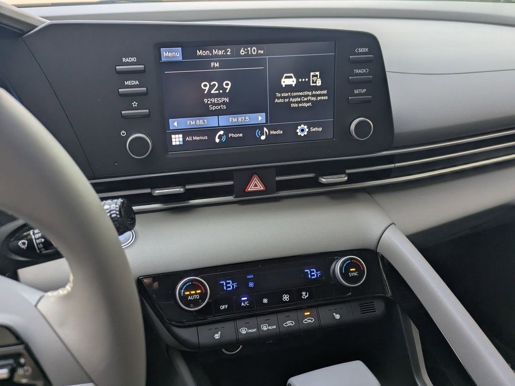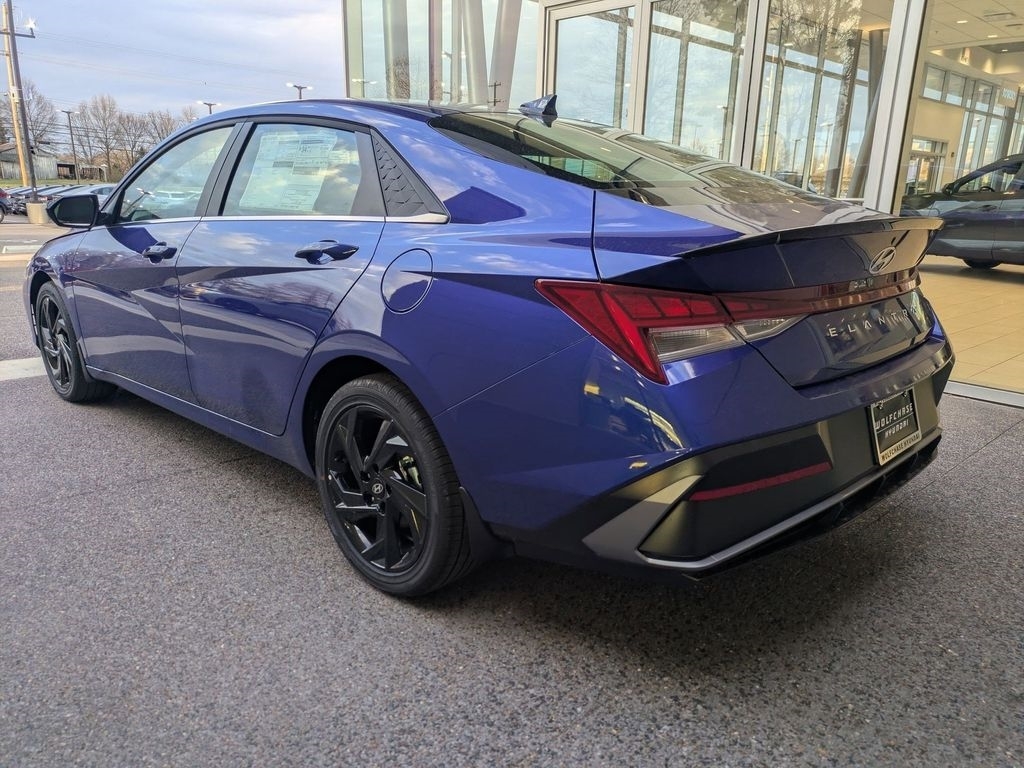 Intense Blue 2026 Hyundai Elantra SEL Sport FWD CVT I4 30/39 City/Highway MPG When purchasing from Wolfchase Hyundai, we provide access to the largest loaner fleet in the Mid-South. Option Group 01, 4-Wheel Disc Brakes, 6 Speakers, ABS brakes, Air Conditioning, All-Season Fitted Liners, Alloy wheels, AM/FM radio, Apple CarPlay & Android Auto, Auto High-beam Headlights, Automatic temperature control, Brake assist, Bumpers: body-color, Cargo Net, Carpeted Floor Mats, Center Console Tray, Delay-off headlights, Driver door bin, Driver vanity mirror, Dual front impact airbags, Dual front side impact airbags, Electronic Stability Control, Exterior Parking Camera Rear, Front anti-roll bar, Front Bucket Seats, Front Center Armrest, Front dual zone A/C, Front reading lights, Front wheel independent suspension, Fully automatic headlights, Heated door mirrors, Heated Front Bucket Seats, Heated front seats, Illuminated entry, Low tire pressure warning, Occupant sensing airbag, Outside temperature display, Overhead airbag, Overhead console, Panic alarm, Passenger door bin, Passenger vanity mirror, Power door mirrors, Power moonroof, Power steering, Power windows, Premium Cloth Seat Trim, Radio: AM/FM/HD Display Audio, Rear Bumper Applique, Rear seat center armrest, Rear side impact airbag, Rear window defroster, Remote keyless entry, Security system, Speed control, Speed-sensing steering, Split folding rear seat, Spoiler, Steering wheel mounted audio controls, Tachometer, Telescoping steering wheel, Tilt steering wheel, Traction control, Trip computer, Variably intermittent wipers, and Wheels: 17x 7.0J Alloy Gloss Black w/Dark Finish. Price includes: $2000 - Hyundai HMF Dealer Choice : $2000 discount and 5.39% APR for 24 months. $44.05 per $1000 financed. Available to well qualified buyers who finance through Hyundai Motor Finance. H704. Exp. 03/31/2026