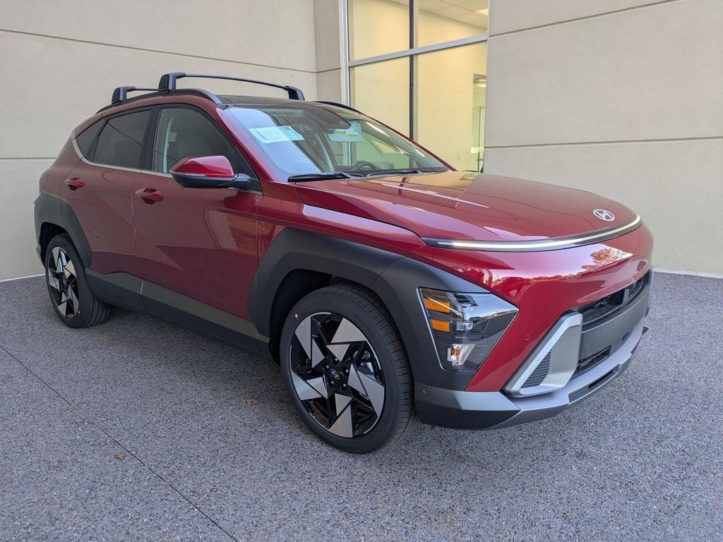 Ultimate Red Metallic 2026 Hyundai Kona Limited FWD 8-Speed Automatic I4 26/31 City/Highway MPG When purchasing from Wolfchase Hyundai, we provide access to the largest loaner fleet in the Mid-South. Option Group 01, 4-Wheel Disc Brakes, 8 Speakers, ABS brakes, Air Conditioning, All Season Fitted Liners, Alloy wheels, AM/FM radio: SiriusXM, Apple CarPlay & Android Auto, Auto High-beam Headlights, Auto-dimming Rear-View mirror, Automatic temperature control, Brake assist, Bumpers: body-color, Cargo Net, Cargo Tray, Carpeted Floor Mats, Cross Rails, Delay-off headlights, Driver door bin, Driver vanity mirror, Dual front impact airbags, Dual front side impact airbags, Electronic Stability Control, Emergency communication system: None, Front anti-roll bar, Front Bucket Seats, Front Center Armrest, Front dual zone A/C, Front reading lights, Front wheel independent suspension, Fully automatic headlights, H-Tex Seat Trim, Heated and Ventilated Front Bucket Seats, Heated door mirrors, Heated front seats, Heated steering wheel, Illuminated entry, Leather steering wheel, Low tire pressure warning, Navigation System, Occupant sensing airbag, Outside temperature display, Overhead airbag, Panic alarm, Passenger door bin, Passenger vanity mirror, Power door mirrors, Power driver seat, Power Liftgate, Power moonroof, Power steering, Power windows, Radio: AM/FM/SiriusXM/HD Audio System, Rear seat center armrest, Rear window defroster, Rear window wiper, Remote keyless entry, Security system, Speed control, Speed-sensing steering, Split folding rear seat, Spoiler, Steering wheel mounted audio controls, Tachometer, Telescoping steering wheel, Tilt steering wheel, Traction control, Trip computer, Turn signal indicator mirrors, Variably intermittent wipers, Ventilated front seats, and Wheels: 19x 7.5J Silver/Black Alloy.