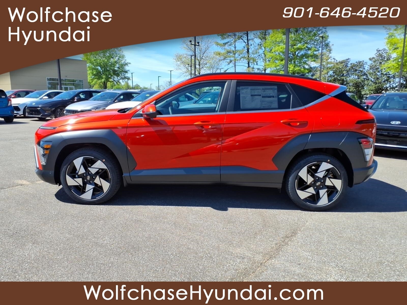 Soultronic Orange Pearl 2026 Hyundai Kona Limited FWD 8-Speed Automatic I4 26/31 City/Highway MPG When purchasing from Wolfchase Hyundai, we provide access to the largest loaner fleet in the Mid-South. Option Group 01, 4-Wheel Disc Brakes, 8 Speakers, ABS brakes, Air Conditioning, All Season Fitted Liners, Alloy wheels, AM/FM radio: SiriusXM, Apple CarPlay & Android Auto, Auto High-beam Headlights, Auto-dimming Rear-View mirror, Automatic temperature control, Brake assist, Bumpers: body-color, Cargo Net, Cargo Tray, Carpeted Floor Mats, Delay-off headlights, Door Sill Plates, Driver door bin, Driver vanity mirror, Dual front impact airbags, Dual front side impact airbags, Electronic Stability Control, Emergency communication system: None, First Aid Kit, Front anti-roll bar, Front Bucket Seats, Front Center Armrest, Front dual zone A/C, Front reading lights, Front wheel independent suspension, Fully automatic headlights, H-Tex Seat Trim, Heated and Ventilated Front Bucket Seats, Heated door mirrors, Heated front seats, Heated steering wheel, Illuminated entry, Leather steering wheel, Low tire pressure warning, Navigation System, Occupant sensing airbag, Outside temperature display, Overhead airbag, Panic alarm, Passenger door bin, Passenger vanity mirror, Power door mirrors, Power driver seat, Power Liftgate, Power moonroof, Power steering, Power windows, Radio: AM/FM/SiriusXM/HD Audio System, Rear seat center armrest, Rear window defroster, Rear window wiper, Remote keyless entry, Security system, Speed control, Speed-sensing steering, Split folding rear seat, Spoiler, Steering wheel mounted audio controls, Tachometer, Telescoping steering wheel, Tilt steering wheel, Traction control, Trip computer, Turn signal indicator mirrors, Variably intermittent wipers, Ventilated front seats, and Wheels: 19x 7.5J Silver/Black Alloy. Price includes: $1000 - Hyundai HMF Dealer Choice : $1000 discount and 5.39% APR for 24 months. $44.05 per $1000 financed. Available to well qualified buyers who finance through Hyundai Motor Finance. H704. Exp. 04/30/2026