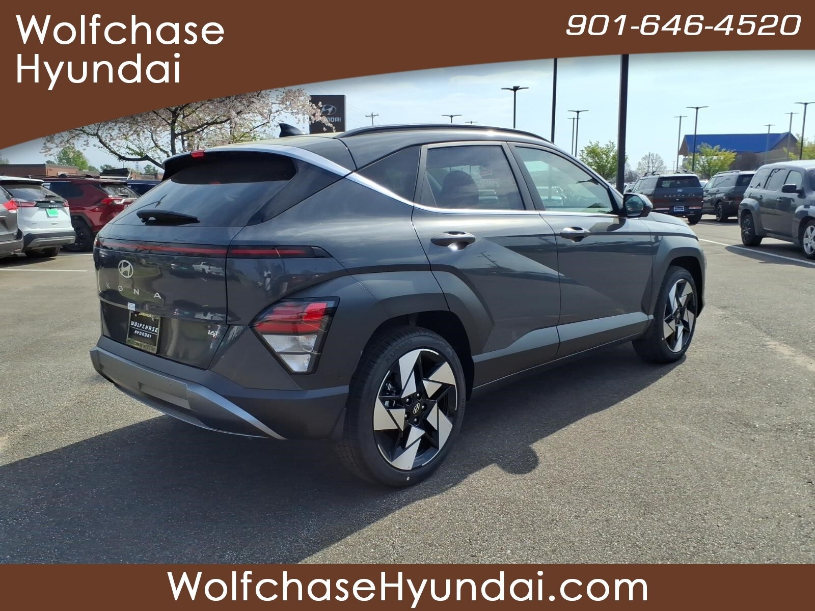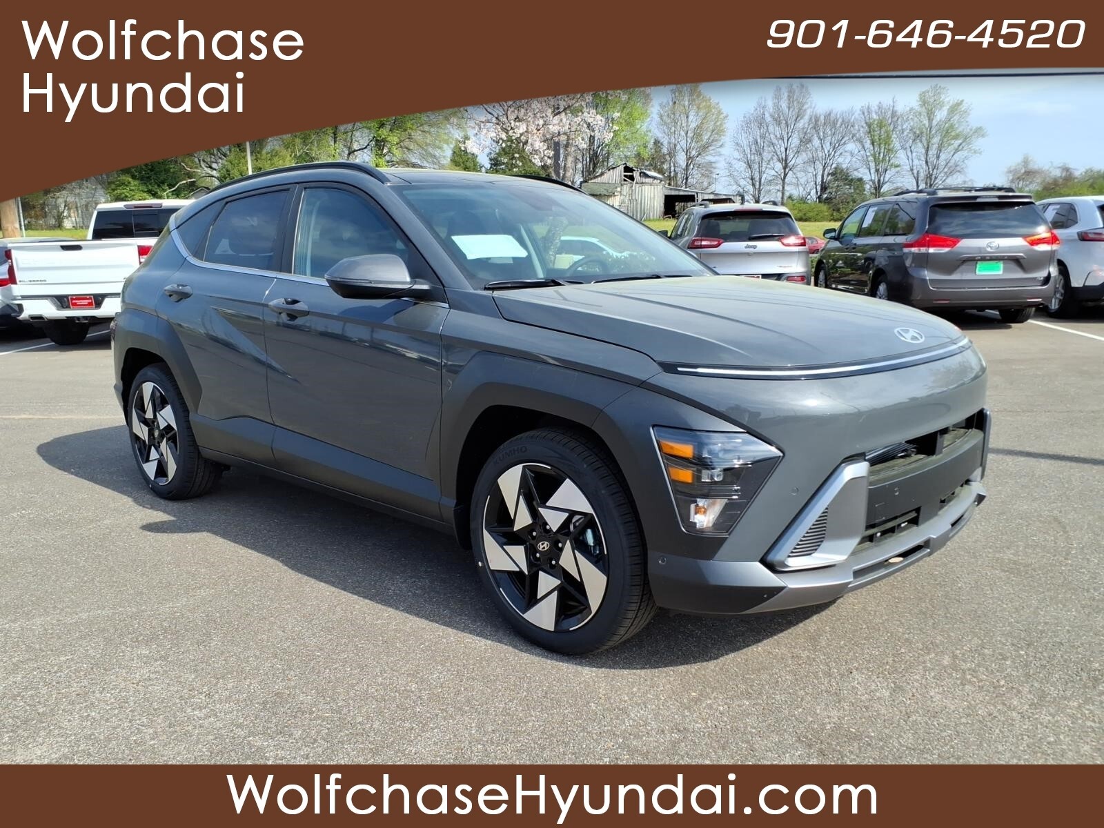 Ecotronic Gray Pearl 2026 Hyundai Kona Limited FWD 8-Speed Automatic I4 26/31 City/Highway MPG When purchasing from Wolfchase Hyundai, we provide access to the largest loaner fleet in the Mid-South. Option Group 01, 4-Wheel Disc Brakes, 8 Speakers, ABS brakes, Air Conditioning, All Season Fitted Liners, Alloy wheels, AM/FM radio: SiriusXM, Apple CarPlay & Android Auto, Auto High-beam Headlights, Auto-dimming Rear-View mirror, Automatic temperature control, Brake assist, Bumpers: body-color, Cargo Blocks, Cargo Net, Cargo Tray, Carpeted Floor Mats, Delay-off headlights, Driver door bin, Driver vanity mirror, Dual front impact airbags, Dual front side impact airbags, Electronic Stability Control, Emergency communication system: None, First Aid Kit, Front anti-roll bar, Front Bucket Seats, Front Center Armrest, Front dual zone A/C, Front reading lights, Front wheel independent suspension, Fully automatic headlights, H-Tex Seat Trim, Heated and Ventilated Front Bucket Seats, Heated door mirrors, Heated front seats, Heated steering wheel, Illuminated entry, Leather steering wheel, Low tire pressure warning, Navigation System, Occupant sensing airbag, Outside temperature display, Overhead airbag, Panic alarm, Passenger door bin, Passenger vanity mirror, Power door mirrors, Power driver seat, Power Liftgate, Power moonroof, Power steering, Power windows, Radio: AM/FM/SiriusXM/HD Audio System, Rear seat center armrest, Rear window defroster, Rear window wiper, Remote keyless entry, Road Assistance Kit, Security system, Severe Weather Kit, Speed control, Speed-sensing steering, Split folding rear seat, Spoiler, Steering wheel mounted audio controls, Tachometer, Telescoping steering wheel, Tilt steering wheel, Traction control, Trip computer, Turn signal indicator mirrors, Variably intermittent wipers, Ventilated front seats, and Wheels: 19x 7.5J Silver/Black Alloy. Price includes: $1000 - Hyundai HMF Dealer Choice : $1000 discount and 5.39% APR for 24 months. $44.05 per $1000 financed. Available to well qualified buyers who finance through Hyundai Motor Finance. H704. Exp. 03/31/2026