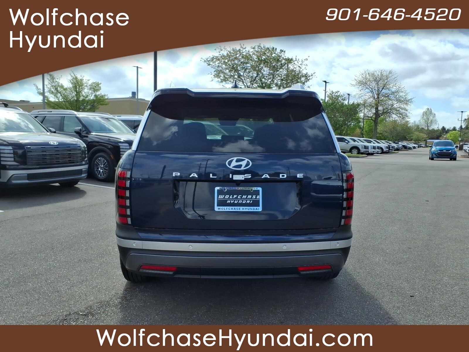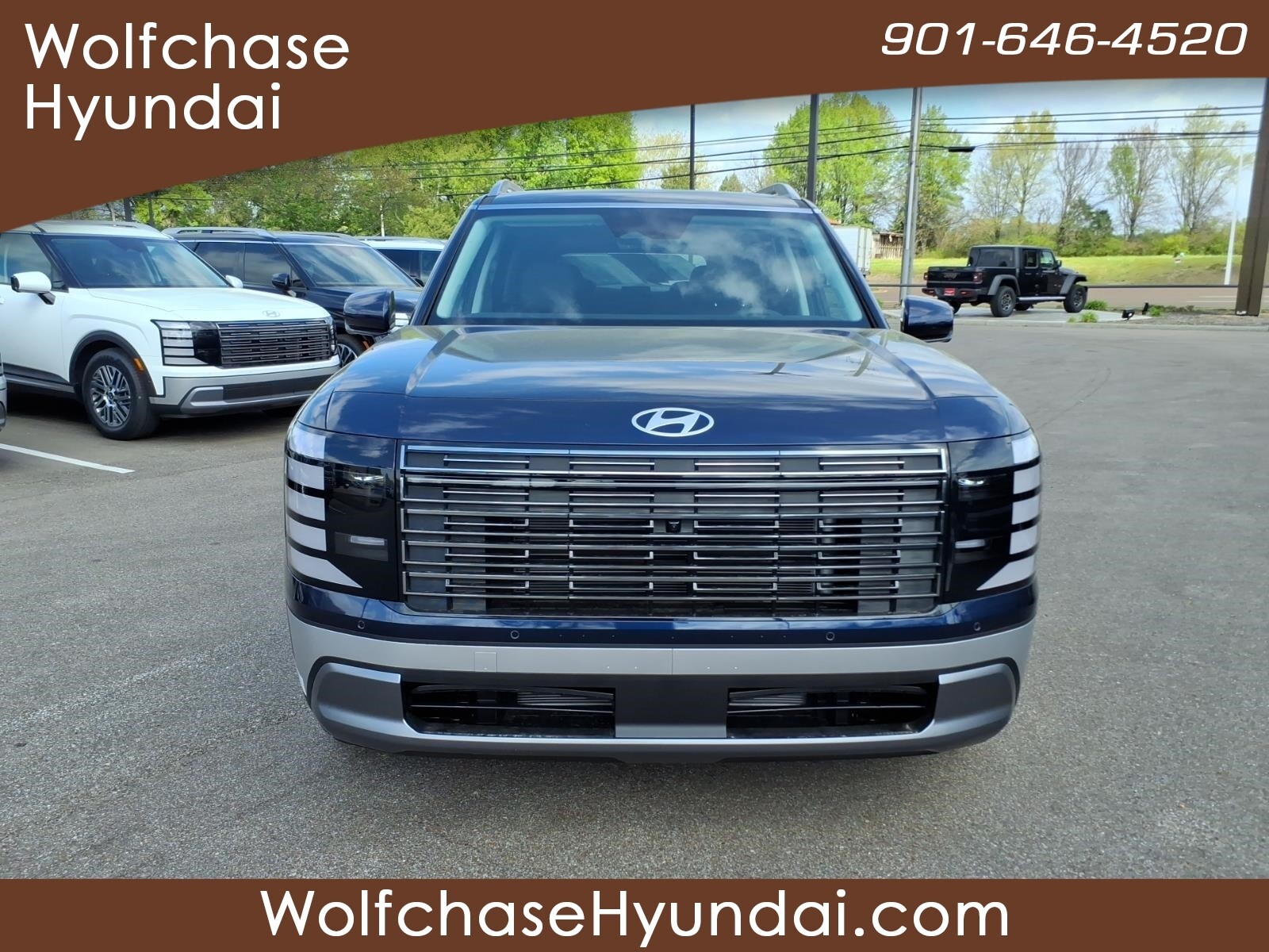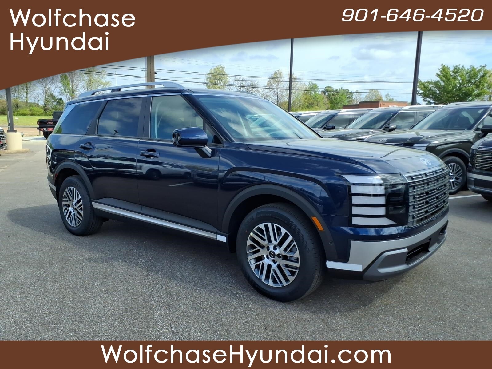 Classy Blue Pearl 2026 Hyundai Palisade SEL Premium 7 Passenger FWD 8-Speed Automatic V6 When purchasing from Wolfchase Hyundai, we provide access to the largest loaner fleet in the Mid-South. Option Group 01, 3rd row seats: split-bench, 4-Wheel Disc Brakes, 8 Speakers, ABS brakes, Air Conditioning, All-Season Fitted Liners, Alloy wheels, AM/FM radio: SiriusXM, Apple CarPlay & Android Auto, Audio memory, Auto High-beam Headlights, Auto-dimming door mirrors, Auto-dimming Rear-View mirror, Auto-leveling suspension, Automatic temperature control, Brake assist, Bumpers: body-color, Cargo Cover, Cargo Tray, Carpeted Floor Mats, Compass, Delay-off headlights, Driver door bin, Driver vanity mirror, Dual front impact airbags, Dual front side impact airbags, Electronic Stability Control, Emergency communication system: None, Exterior Parking Camera Rear, Four wheel independent suspension, Front anti-roll bar, Front Bucket Seats, Front Center Armrest, Front dual zone A/C, Front reading lights, Fully automatic headlights, Garage door transmitter: HomeLink, H-Tex Leatherette Seat Trim, Heated and Ventilated Front Bucket Seats, Heated door mirrors, Heated front seats, Heated rear seats, Heated steering wheel, HVAC memory, Illuminated entry, Knee airbag, Leather steering wheel, Low tire pressure warning, Memory seat, Navigation System, Occupant sensing airbag, Outside temperature display, Overhead airbag, Overhead console, Panic alarm, Passenger door bin, Passenger vanity mirror, Power door mirrors, Power driver seat, Power Liftgate, Power moonroof, Power passenger seat, Power steering, Power windows, Radio data system, Radio: Infotainment Navigation System, Rear air conditioning, Rear anti-roll bar, Rear audio controls, Rear reading lights, Rear side impact airbag, Rear window defroster, Rear window wiper, Reclining 3rd row seat, Remote keyless entry, Security system, Speed control, Split folding rear seat, Spoiler, Steering wheel mounted audio controls, Tachometer, Telescoping steering wheel, Tilt steering wheel, Traction control, Trip computer, Turn signal indicator mirrors, Variably intermittent wipers, Ventilated front seats, Ventilated rear seats, and Wheels: 18x 8.0J Alloy. Price includes: $1000 - Hyundai HMF Dealer Choice : $1000 discount and 5.39% APR for 24 months. $44.05 per $1000 financed. Available to well qualified buyers who finance through Hyundai Motor Finance. H704. Exp. 03/31/2026