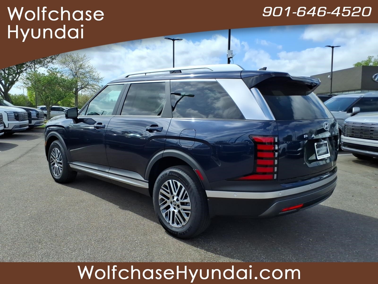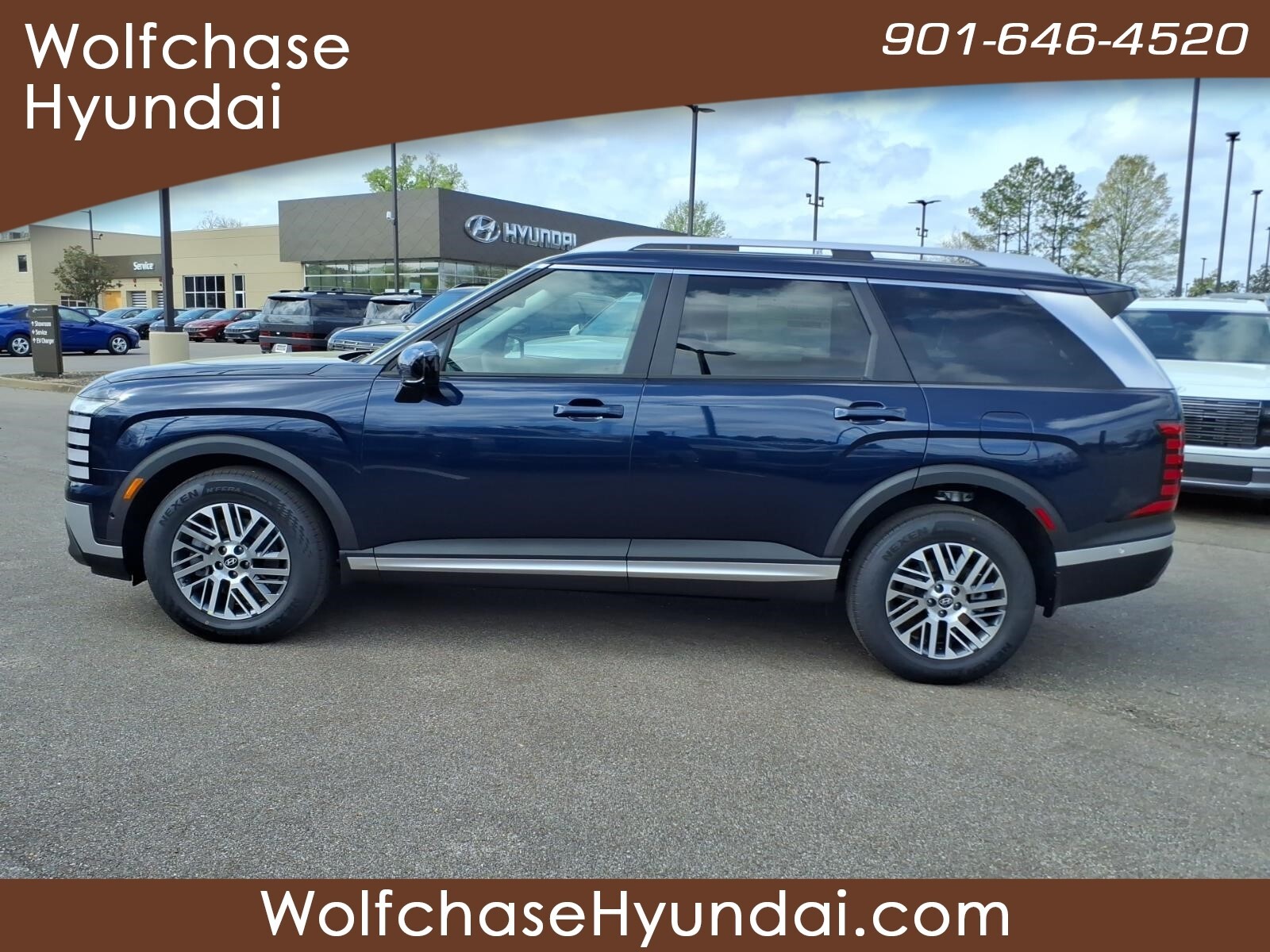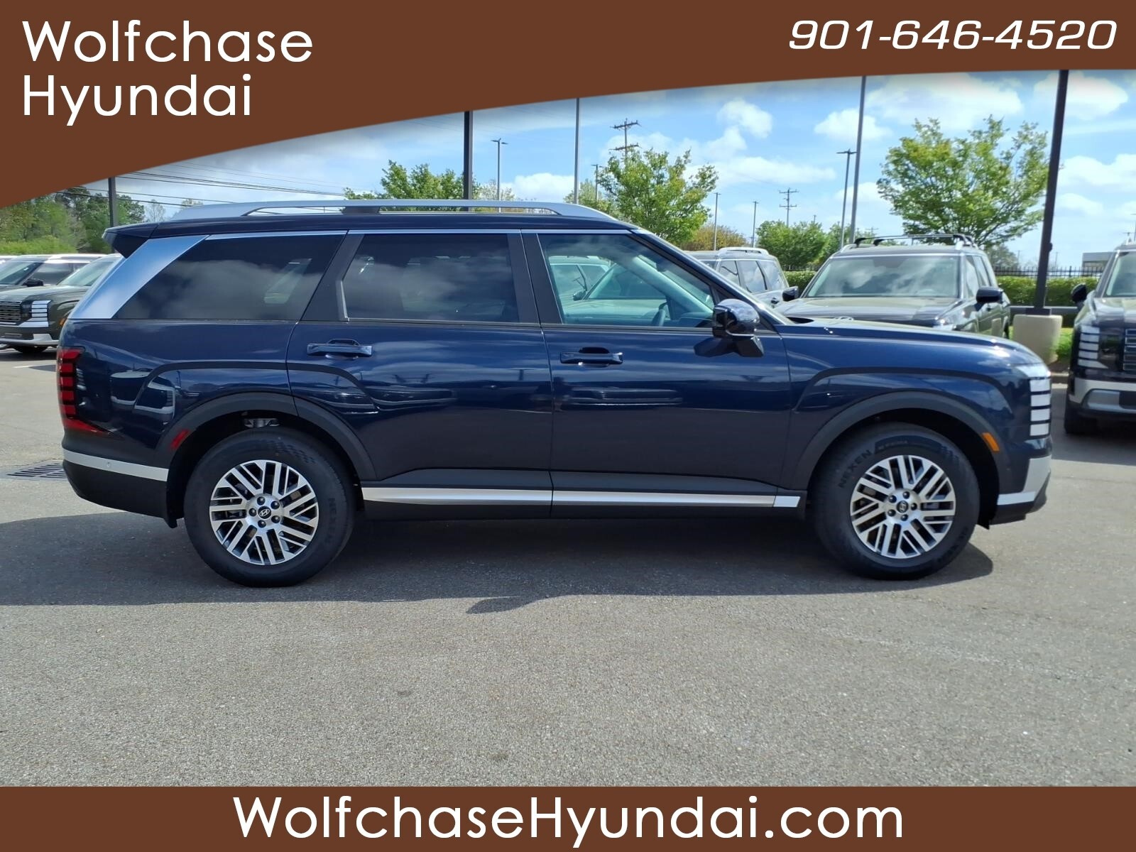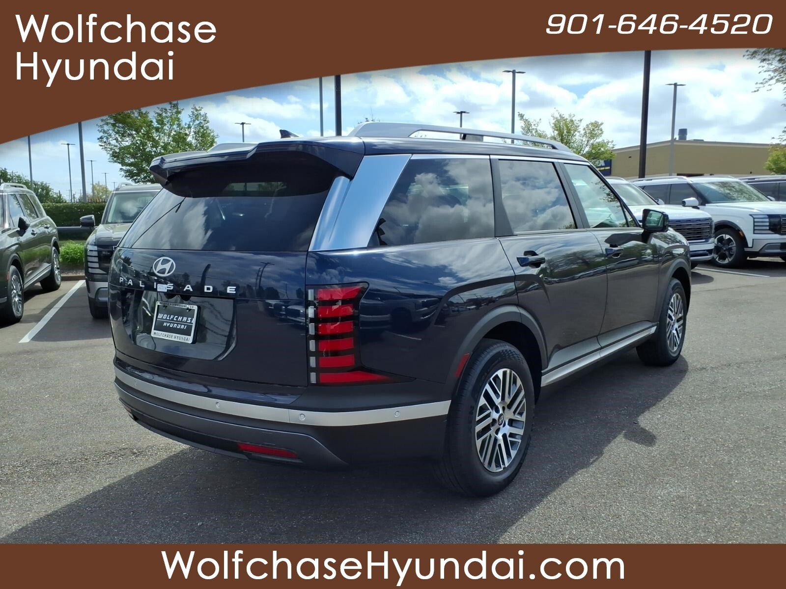 Classy Blue Pearl 2026 Hyundai Palisade SEL Premium 7 Passenger FWD 8-Speed Automatic V6 When purchasing from Wolfchase Hyundai, we provide access to the largest loaner fleet in the Mid-South. Option Group 01, 3rd row seats: split-bench, 4-Wheel Disc Brakes, 8 Speakers, ABS brakes, Air Conditioning, All-Season Fitted Liners, Alloy wheels, AM/FM radio: SiriusXM, Apple CarPlay & Android Auto, Audio memory, Auto High-beam Headlights, Auto-dimming door mirrors, Auto-dimming Rear-View mirror, Auto-leveling suspension, Automatic temperature control, Brake assist, Bumpers: body-color, Cargo Cover, Cargo Tray, Carpeted Floor Mats, Compass, Delay-off headlights, Driver door bin, Driver vanity mirror, Dual front impact airbags, Dual front side impact airbags, Electronic Stability Control, Emergency communication system: None, Exterior Parking Camera Rear, Four wheel independent suspension, Front anti-roll bar, Front Bucket Seats, Front Center Armrest, Front dual zone A/C, Front reading lights, Fully automatic headlights, Garage door transmitter: HomeLink, H-Tex Leatherette Seat Trim, Heated and Ventilated Front Bucket Seats, Heated door mirrors, Heated front seats, Heated rear seats, Heated steering wheel, HVAC memory, Illuminated entry, Knee airbag, Leather steering wheel, Low tire pressure warning, Memory seat, Navigation System, Occupant sensing airbag, Outside temperature display, Overhead airbag, Overhead console, Panic alarm, Passenger door bin, Passenger vanity mirror, Power door mirrors, Power driver seat, Power Liftgate, Power moonroof, Power passenger seat, Power steering, Power windows, Radio data system, Radio: Infotainment Navigation System, Rear air conditioning, Rear anti-roll bar, Rear audio controls, Rear reading lights, Rear side impact airbag, Rear window defroster, Rear window wiper, Reclining 3rd row seat, Remote keyless entry, Security system, Speed control, Split folding rear seat, Spoiler, Steering wheel mounted audio controls, Tachometer, Telescoping steering wheel, Tilt steering wheel, Traction control, Trip computer, Turn signal indicator mirrors, Variably intermittent wipers, Ventilated front seats, Ventilated rear seats, and Wheels: 18x 8.0J Alloy. Price includes: $1000 - Hyundai HMF Dealer Choice : $1000 discount and 5.39% APR for 24 months. $44.05 per $1000 financed. Available to well qualified buyers who finance through Hyundai Motor Finance. H704. Exp. 03/31/2026