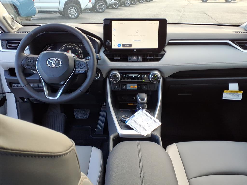 Recent Arrival! !!This 2025 Toyota RAV4 Hybrid XLE Premium in Wind Chill Prl features the following:, 2.5L 4-Cylinder. ALL OUR NEW CARS COME WITH A LIFETIME POWERTRAIN WARRANTY. EXCLUDES BUSINESS PURCHASES. SEE DEALER FOR DETAILS. 41/38 City/Highway MPG Advanced Technology Package (Blind Spot Monitor, Front & Rear Parking Assist w/Automated Braking, Intelligent Clearance Sonar (ICS), and Qi-Compatible Wireless Smartphone Charging), Weather Package (Driver Seat w/2-Position Memory Function, Front Seat Heating, and Heated 3-Spoke Leather Steering Wheel), XLE Premium Package, 2.5L 4-Cylinder, 3 Spoke Leather Steering Wheel, 4-Wheel Disc Brakes, 6 Speakers, ABS brakes, Air Conditioning, All Weather Floor Liners & Cargo Tray (TMS), Alloy wheels, AM/FM radio: SiriusXM, Anti-Theft System, Auto High-beam Headlights, Automatic temperature control, Brake assist, Bumpers: body-color, Delay-off headlights, Door Sill Protector (TMS), Driver door bin, Driver vanity mirror, Dual front impact airbags, Dual front side impact airbags, Electronic Stability Control, Emergency communication system: Safety Connect (1-year trial), Exterior Parking Camera Rear, Four wheel independent suspension, Front anti-roll bar, Front Bucket Seats, Front Center Armrest, Front dual zone A/C, Front fog lights, Front reading lights, Fully automatic headlights, Heated door mirrors, Illuminated entry, Knee airbag, Leather Shift Knob, Leather steering wheel, Low tire pressure warning, Mudguards (TMS), Occupant sensing airbag, Outside temperature display, Overhead airbag, Overhead console, Panic alarm, Passenger door bin, Passenger vanity mirror, Power door mirrors, Power driver seat, Power Liftgate, Power moonroof, Power steering, Power windows, Radio data system, Radio: AM/FM/XM Audio System, Rear anti-roll bar, Rear seat center armrest, Rear window defroster, Rear window wiper, Remote keyless entry, SofTex Seat Trim, Speed control, Speed-sensing steering, Split folding rear seat, Spoiler, Steering wheel mounted audio controls, Telescoping steering wheel, Tilt steering wheel, Traction control, Trip computer, Turn signal indicator mirrors, Variably intermittent wipers, and Wheels: 18x 7.0J 5-Spoke Sport Alloy.
